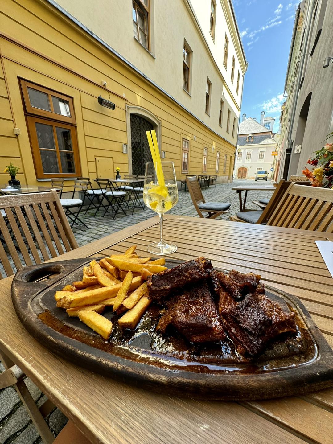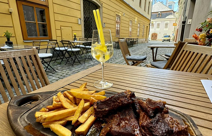 Restaurace nabízí sezónní speciality a příjemnou atmosféru s venkovní zahrádkou přímo v centru města.