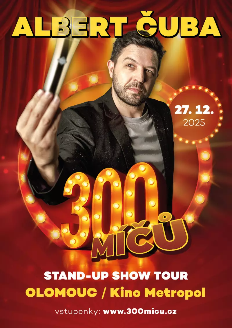 ⚠️ Olomouci! 💥 ALBERT ČUBA přijede za vámi už 27. 12. se svou nekompromisní STAND-UP Show 300 Míčů! 🎤 Vstupenky jsou perfektní vánoční dárek. 🎁 Darujte večer s Albertem plný smíchu a nekorektního humoru. 🎄