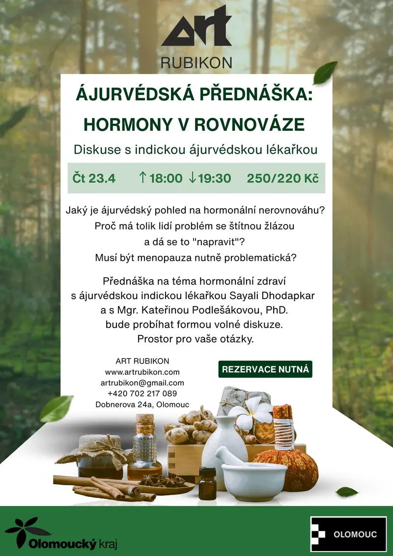 Jaký je ájurvédský pohled na hormonální nerovnováhu? Proč má tolik lidí problém se štítnou žlázou a dá se to "napravit"? Musí být menopauza nutně problematická? To a mnoho další se dozvíte v další ze série přednášek o Ájurvédě. Budeme rádi, když se opět zapojíte do diskuze a připravíte si otázky, které vás zajímají.