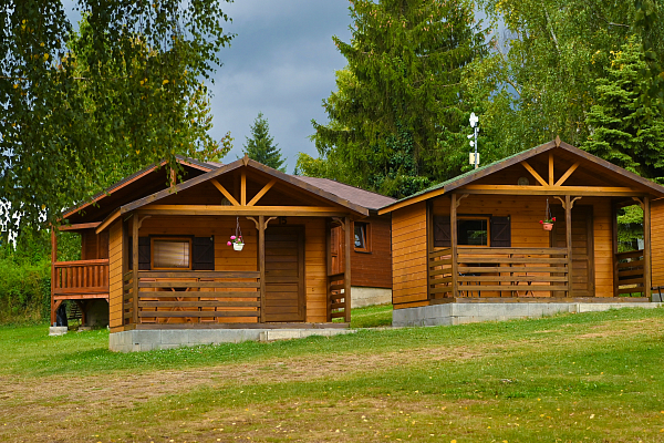 Domki wolnostojące domki z małą werandą (wybudowane w latach 2020-2022) domki z drzwiami dzielącymi, które mogą być również używane jako domki 4-osobowe - domki dwupokojowe domki ze wspólnym korytarzem wewnętrznym, które mogą być również używane jako 4-osobowe - dwupokojowe domki (wybudowane w 2022 r.) Wszystkie domki mają takie samo wyposażenie, a mianowicie łóżka, miejsce do przechowywania ubrań, siedzenia, pościel.