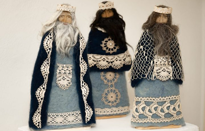 Letošní vánoční výstavou bude tvorba manželů Ivany a Filipa Langrových. Ivana Langrová se věnuje plstění, vlnu si sama barví, přede, tká a plstí. Můžete se těšit na unikátní plstěné betlémy, postavičky a obrazy, z nichž některé vznikly přímo pro naši galerii. Výstavu doplní dřevěné sochy Filipa Langra.