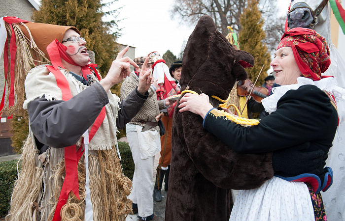 Smrtka, slamák, medvěd s medvědářem nebo stárek se stárkou už neodmyslitelně patří k přerovskému masopustu. Masky vyrazí na obchůzku městem poté, co jim primátor předá masopustní právo, kterým maškary symbolicky přebírají vládu nad městem. Předání masopustního práva proběhne před přerovskou radnicí na náměstí TGM v 9 hodin. Odtud pak masky vyrazí na faru, k pasáži, a odtud Jiráskovou ulicí přes Wilsonovu a do ulice Na Marku. Masopustní chasu budou doprovázet cimbálová muzika.
